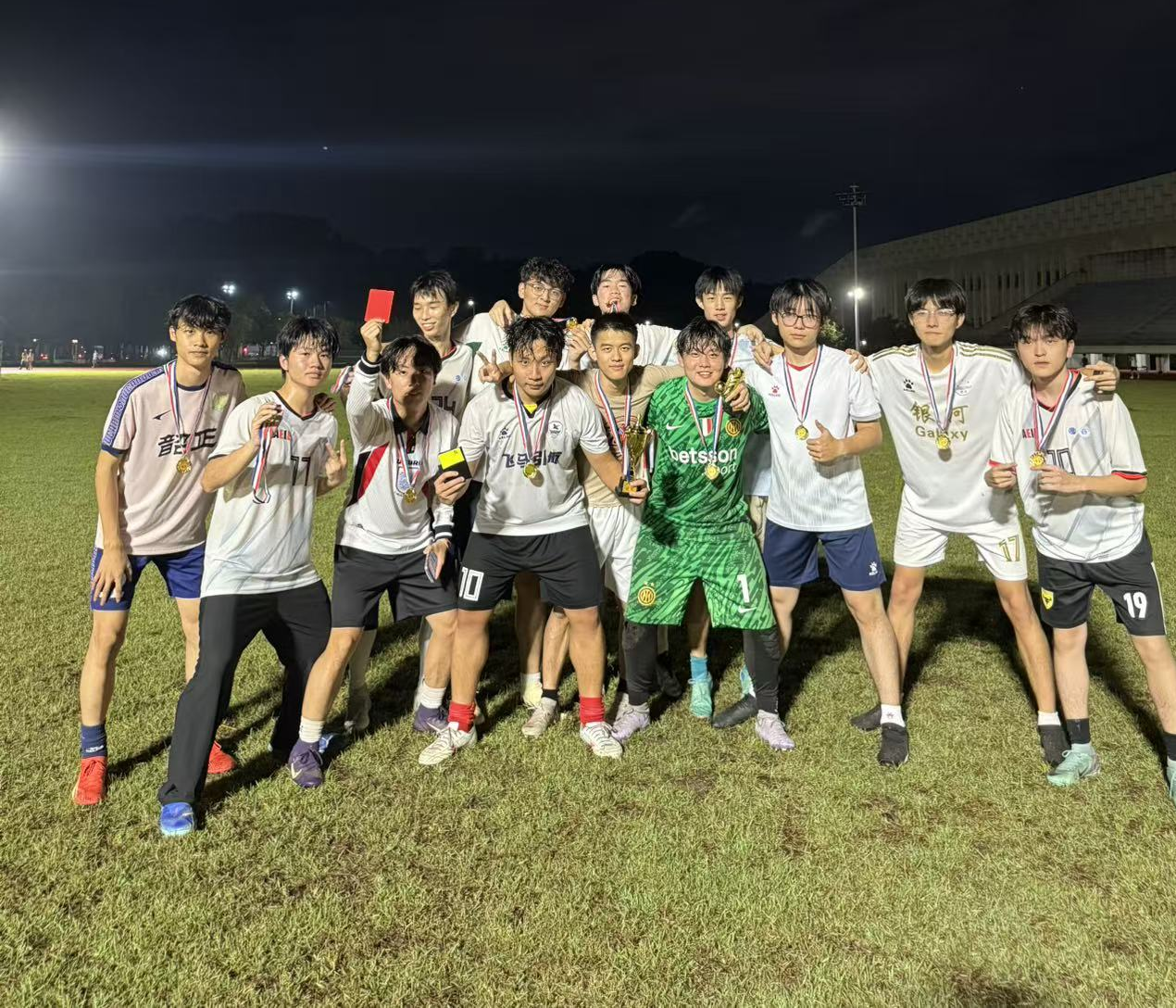 比赛采用单循环赛制,每支队伍分别与其他四支队伍角逐,最终积分最高的两支队伍进行决赛。10月12日晚在南区足球场展开决赛的角逐,两队球员拼尽全力、奋勇拼搏,在常规时间结束打成3:3平进入点球大战,最终C队以5:4的总比分战胜了E队勇夺冠军!C队25届大数据与人工智能学院的黄宇聪凭借9粒进球荣获射手王!此次比赛不仅丰富了校园生活,更培养了学生的团队合作精神以及竞争意识。
