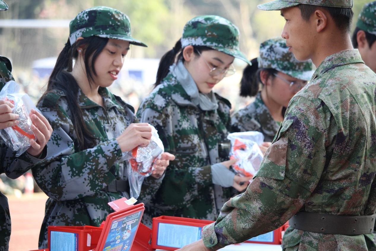 训练期间,同学们克服冬日寒意,在教官的悉心指导下,全身心投入各项训练。从基础的队列训练到旗语方阵、匕首操、短棍术、军体拳与擒敌拳等特色项目,训练内容充实有序。旗语方阵动作整齐划一,匕首操铿锵有力,短棍术虎虎生风,军体拳气势如虹,擒敌拳招招到位,展现出广金学子刚毅勇健的精神风貌。同学们不畏艰苦、斗志昂扬,在训练场上挥洒汗水,诠释了“不怕苦、不怕累”的坚韧精神。此外,消防演练将国防教育与生命安全教育深度融合,有效提升了学生的应急避险能力,为平安校园建设奠定了坚实基础。训练期间,新生们的纪律意识与集体荣誉感显著增强。