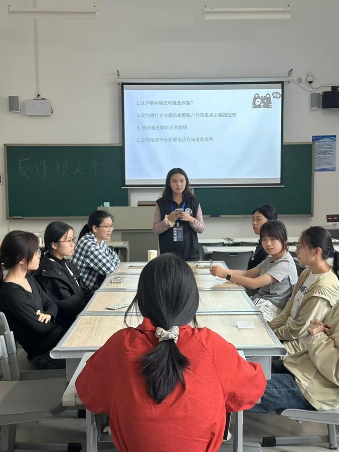 活动以“寓教于乐”为核心,通过反诈杀、反诈拼图、反诈连连看三大趣味游戏,将反诈知识融入沉浸式体验。活动聚焦大学生社会经验不足、防范意识薄弱的痛点,创新采用“游戏+教育”模式。作为核心长游戏的“诈骗杀”,以经典桌游为原型重构角色体系,模拟真实诈骗场景。反诈连连看两款短游戏则以“低门槛、高互动”为特点,吸引学生即时参与。反诈拼图要求15分钟内完成反诈工作站logo拼接;反诈连连看中,工作人员出示虚假兼职、刷单返利、冒充身份等诈骗情景图片,参与者需精准匹配对应诈骗类型。